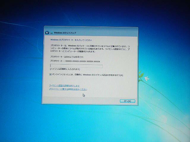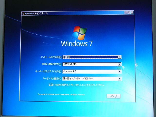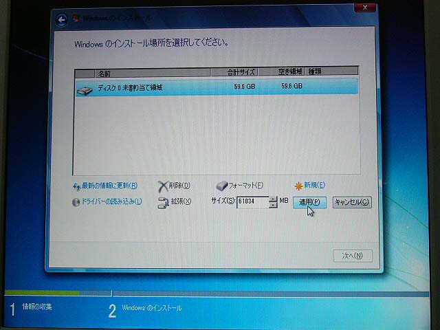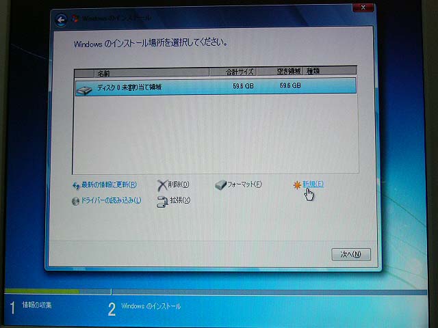 最初から分割する場合はここで領域の設定をしますが、Windows7では