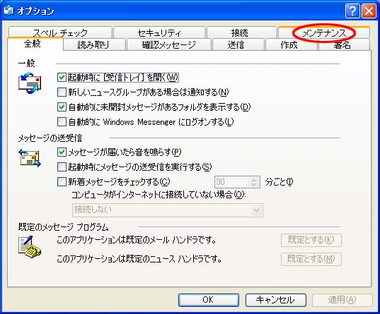 オプションのダイアログボックスが開きますので、「メンテナンス」タブをクリック。