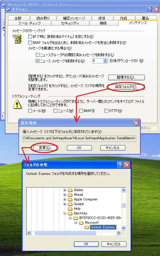 C:\Documents and Settings\カレントユーザー名\Local Settings\Application Data\Identities\{ XXXXX-・・・-XXXX }\Microsoft\Outlook Express