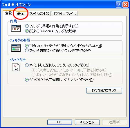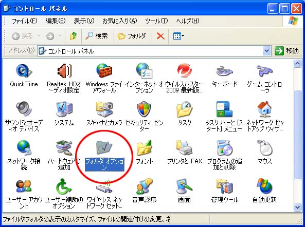 まず、コントロールパネルで「フォルダオプション」を開く。