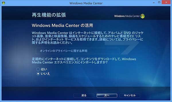 Windows8-Pro 単品のMedia Centerあり(2013年1月31日まで無料)